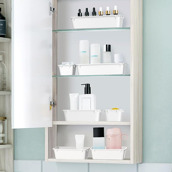 WOWBOX 25 PCS Plastic Drawer Organizer Set, 4 Sizes Desk Drawer Divider Organizers and Storage Bins for Makeup, Jewelry, Gadgets for Kitchen, Bedroom, Bathroom, Office, White