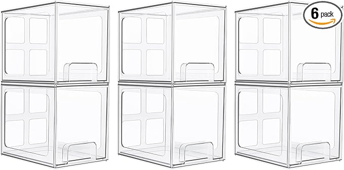 Vtopmart 6 pack Stackable Storage Drawers, 6.6''Tall Acrylic Bathroom Makeup Organizers,Clear Plastic Drawers For Vanity, Undersink, Kitchen Cabinet,Pantry Organization and Storage