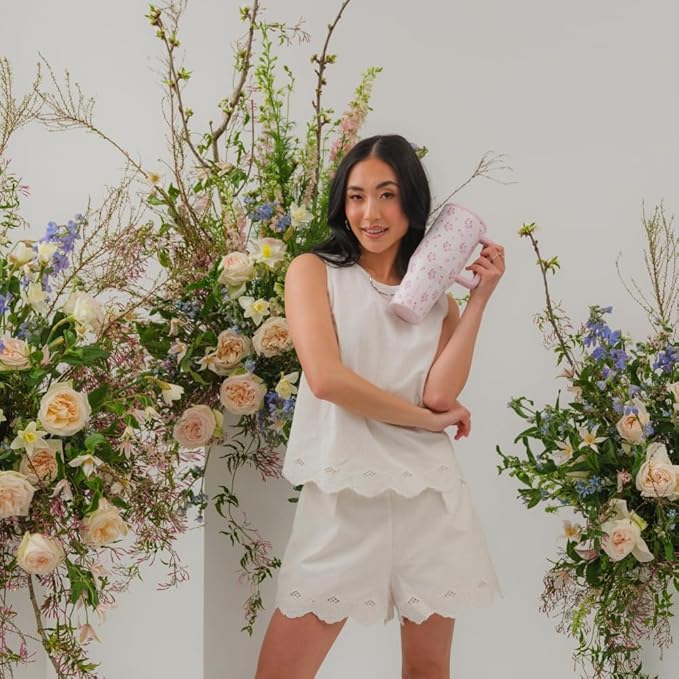 HydroJug Traveler - 32 oz Water Bottle with Handle & Flip Straw - Fits in Cup Holder, Leak Resistant Tumbler-Reusable Insulated Stainless Steel & Rubber Base - Gifts for Women & Men, Wildrose
