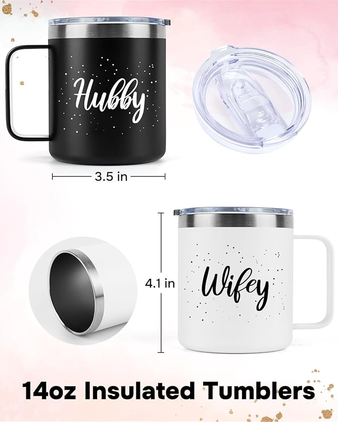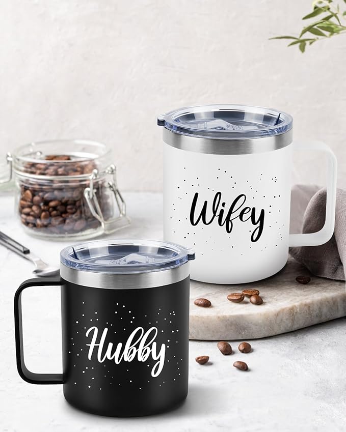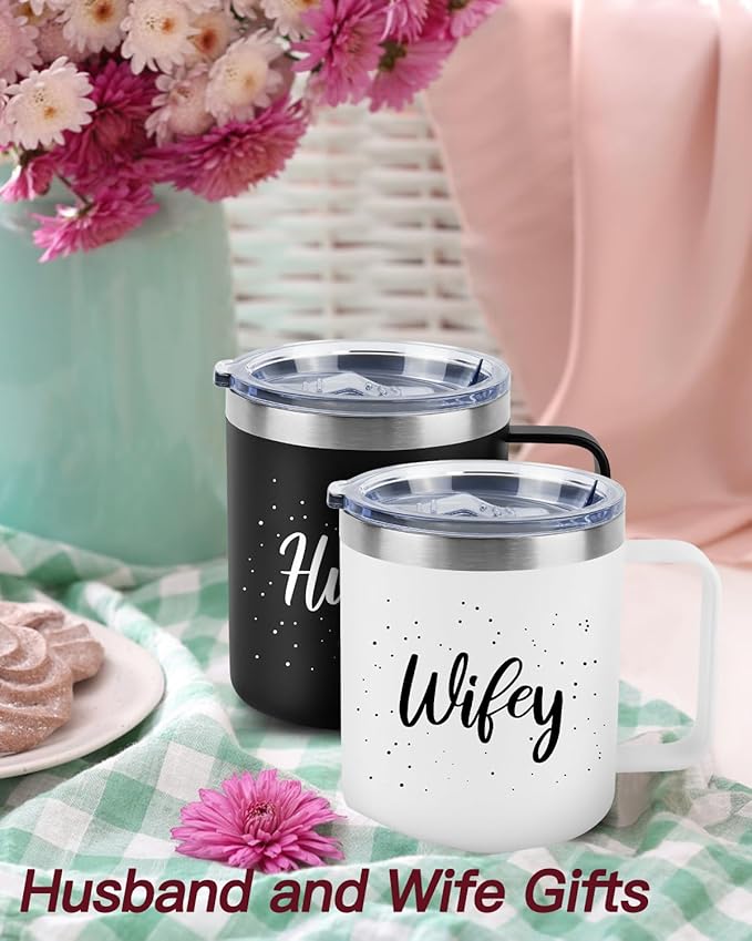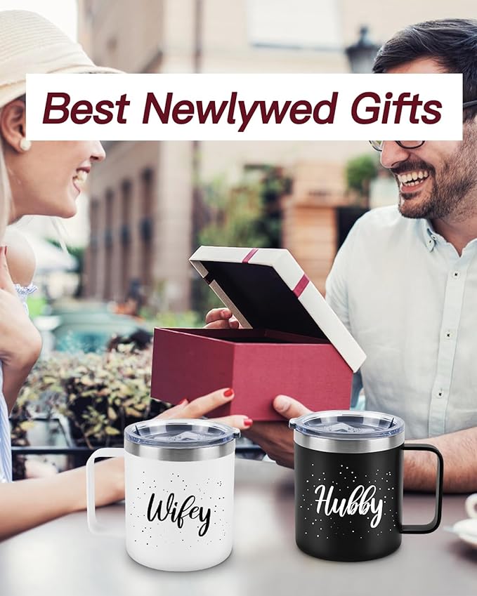 Husband and Wife Gifts, Mr & Mrs Coffee Mugs Set, Hubby and Wifey Gifts, Newlywed Gif 14oz Stainless Steel Insulated Mug(Black White)