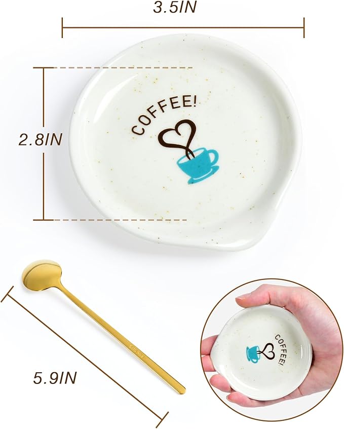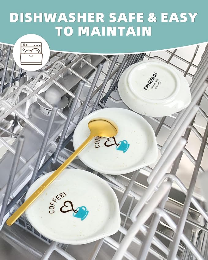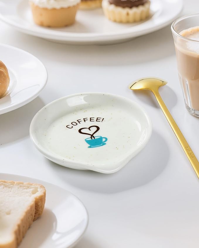 FANGSUN Coffee Spoon and Rest Set,Mini Spoon Holder for Teaspoon, Stirrers, Farmhouse Ceramic 3.5-Inch Small Tea Spoon Rest for Coffee Bar Accessories/Station Decor/Ideas Gifts, White