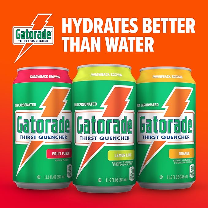 About This Includes 18 (11.6 fl oz) cans of Gatorade Thirst Quencher Sports Drink, 6 lemon Lime, 6 Fruit Punch... Read more