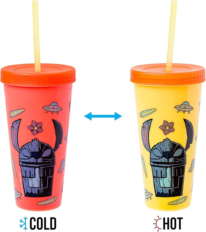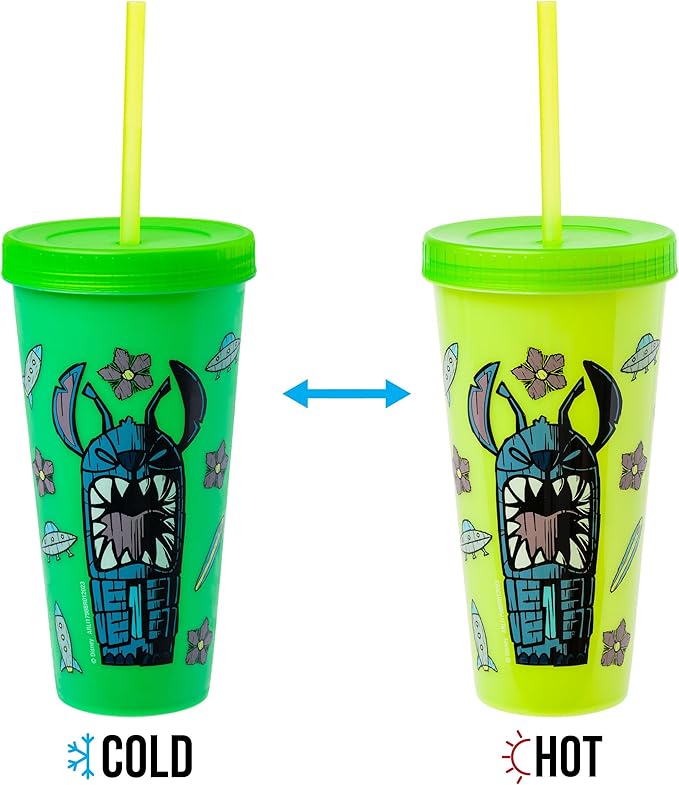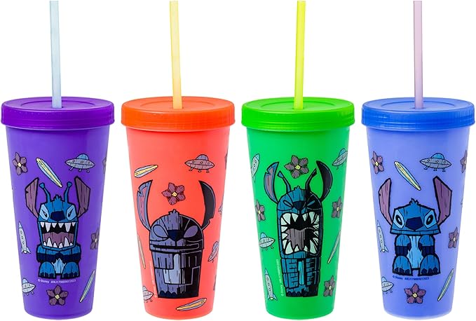 Silver Buffalo Lilo and Stitch Tiki Stitch Set 24oz. 4 pack Color Change Plastic Tumbler