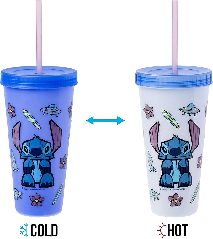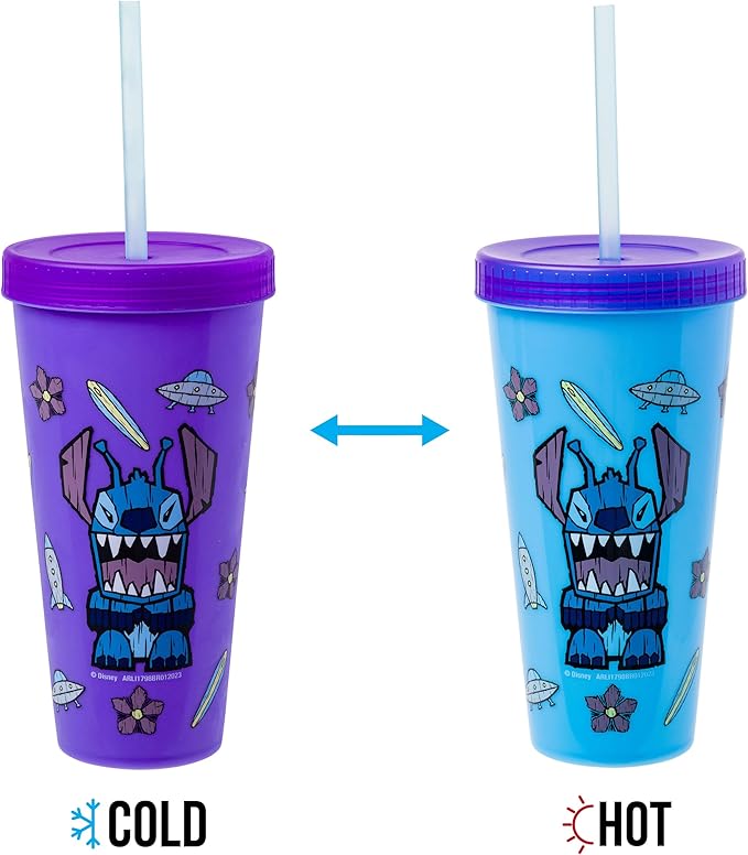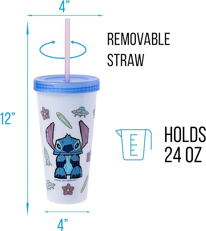 About This TROPICAL DESIGN AND MATERIALS: Set includes four 24-ounce plastic tumblers featuring vibrant tiki-themed Stitch artwork; cups change color... Read more