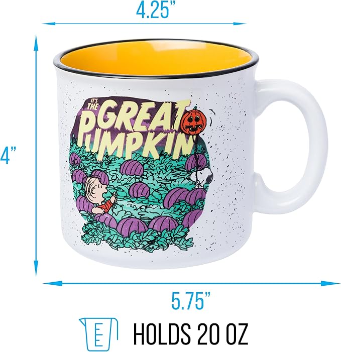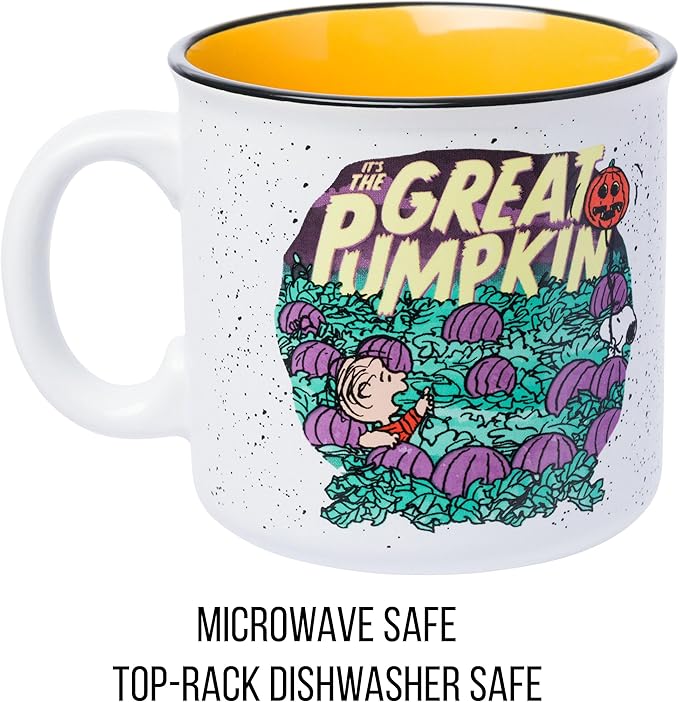 Silver Buffalo Peanuts The Great Pumpkin Featuring Linus and Snooy Halloween Spooky Ceramic Camper Mug, 20 ounces