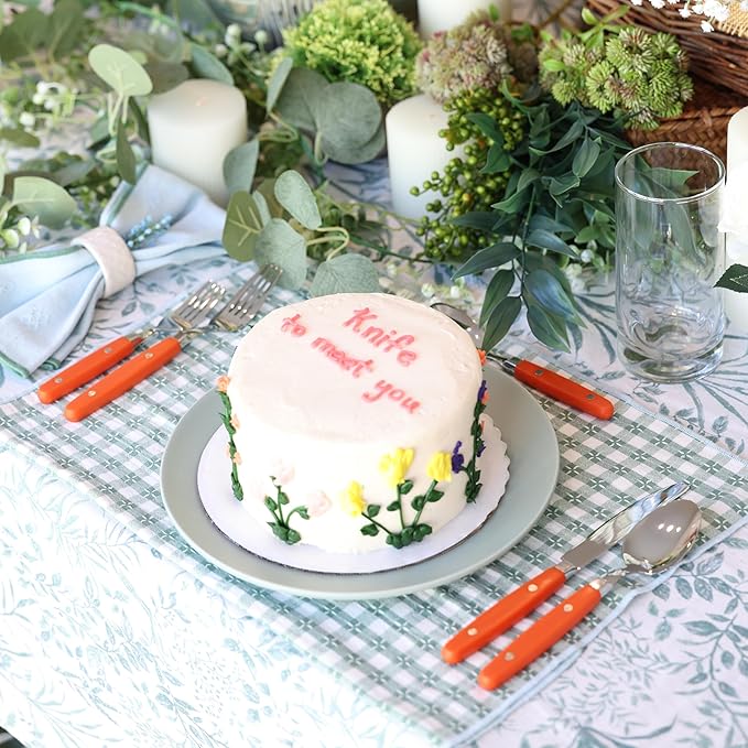 ANNOVA Silverware Set, Retro/Rivet Colorful Stainless Steel Tableware Kitchen Flatware Set Utensils, Includes Dinner Knives, Forks, Spoons, Salad Forks & Dessert Spoons (Orange, 20 Pieces)