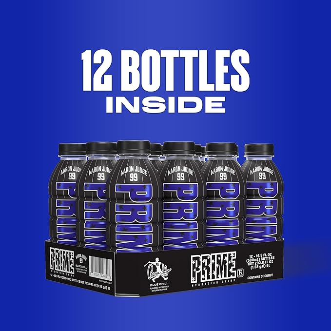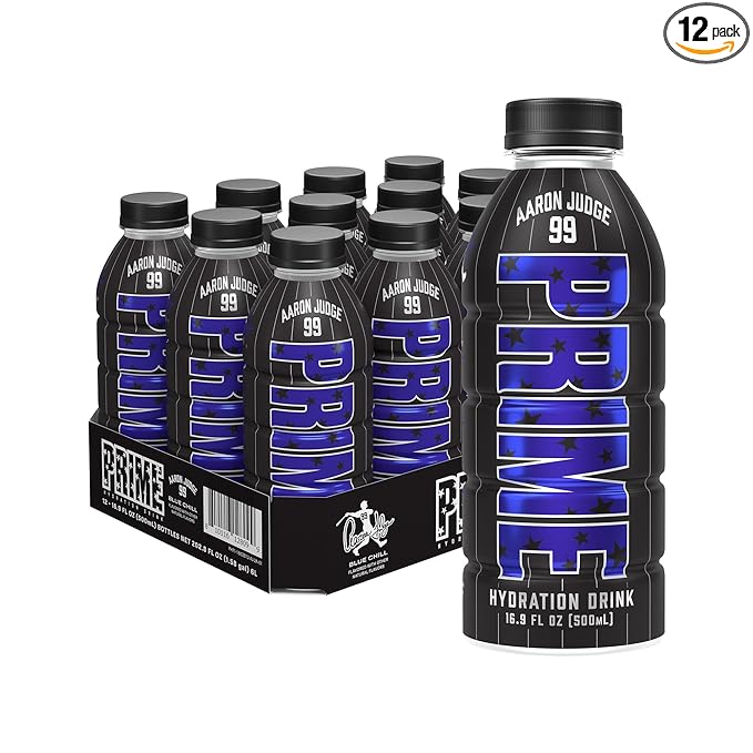 PRIME Hydration Aaron Judge, Sports Drinks, Electrolyte Enhanced for Replenishing Fluids, 250mg BCAAs, B Vitamins, Antioxidants, Low Sugar, 16.9 Fl Oz, 12 Pack