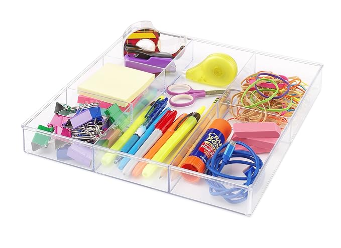 Whitmor Clear 6-Section Drawer Organizer | For Makeup & Accessories | Sturdy Resin | 11.9 x 11.9 x 1.7 Inches | Pack of 6