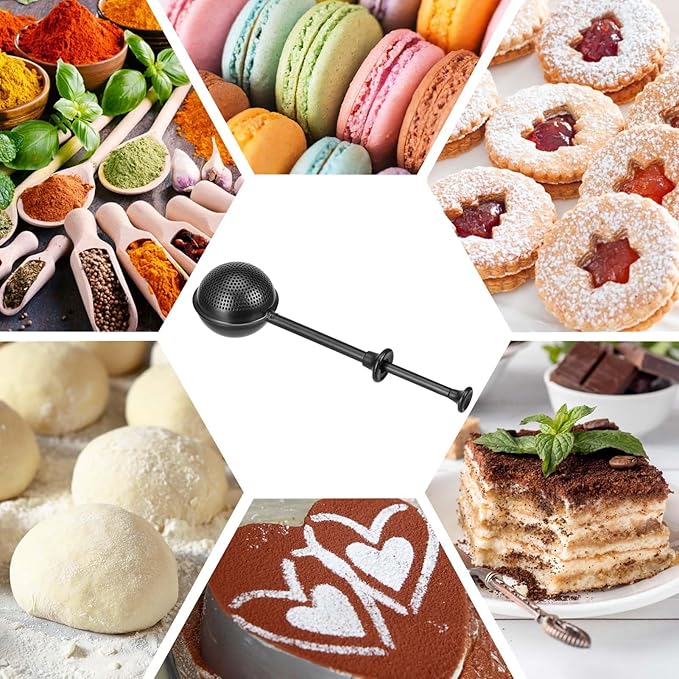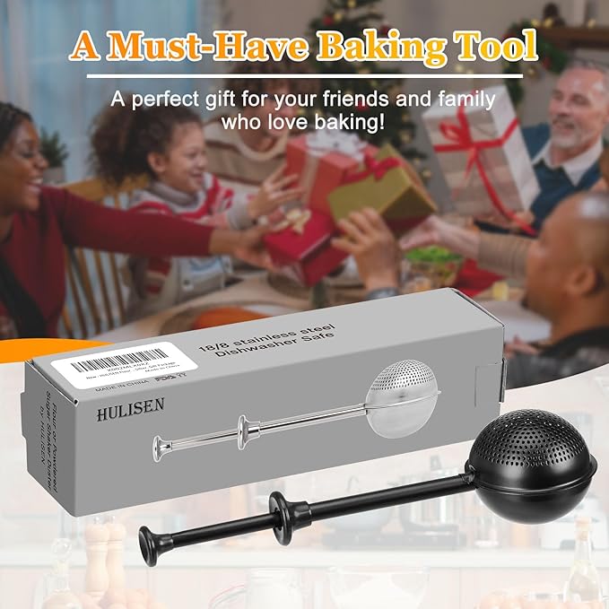 HULISEN Flour Duster for Baking, One-Handed Operation, 304 Stainless Steel Powdered Sugar Shaker Duster, Pick Up and Dust Flour Sifter, Gift Package, Black