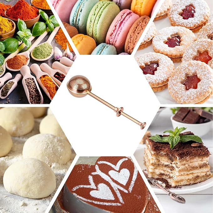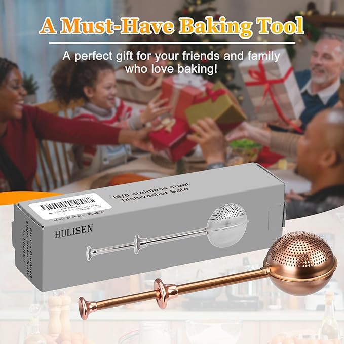 HULISEN Flour Duster for Baking, One-Handed Operation, 304 Stainless Steel Powdered Sugar Shaker Duster, Pick Up and Dust Flour Sifter, Gift Package, Brown