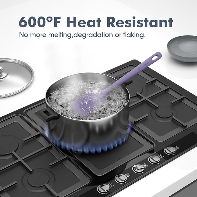 5 Pieces Silicone Spatula Set, Food Grade Rubber Spatula, Upgrade Strong Handle with Ergonomic Grip, Heat Resistant Up to 600°F for Nonstick Cookware, Cooking Purple