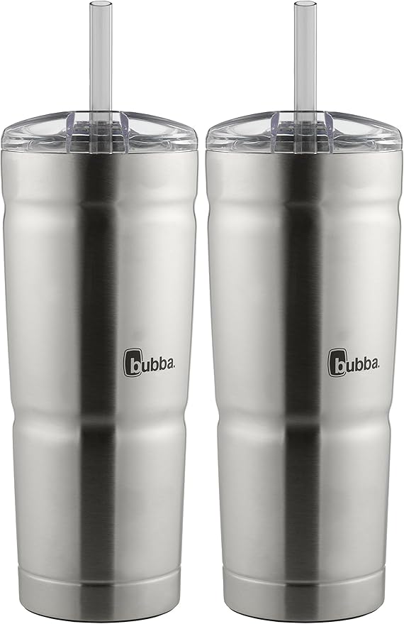 Bubba Brands Envy S Vacuum-Insulated Stainless Steel Tumbler, 24oz with Lid and Straw, BPA-Free, Ideal for Iced Coffee or Water, Travel-Friendly, Steel/Clear (Pack of 2)