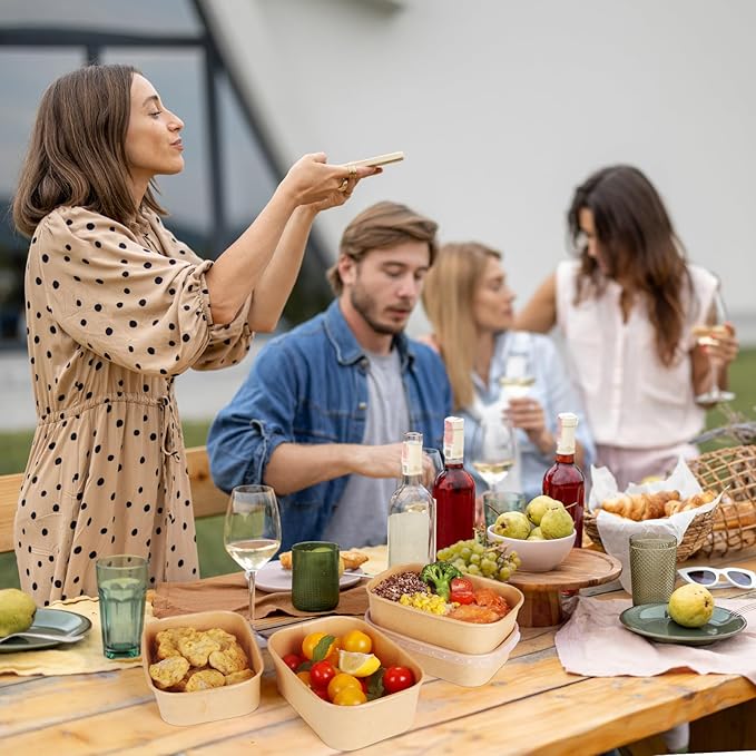 About This Package Contains: 50 count 25oz Rectangle kraft paper bowls with 50 count clear lids. Material: These 25oz paper... Read more