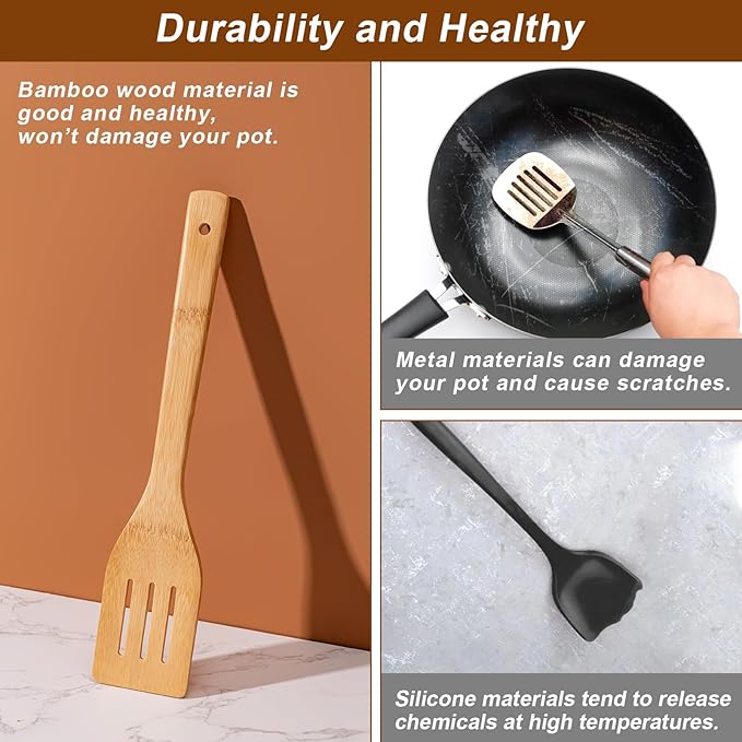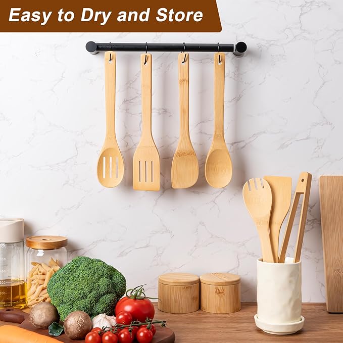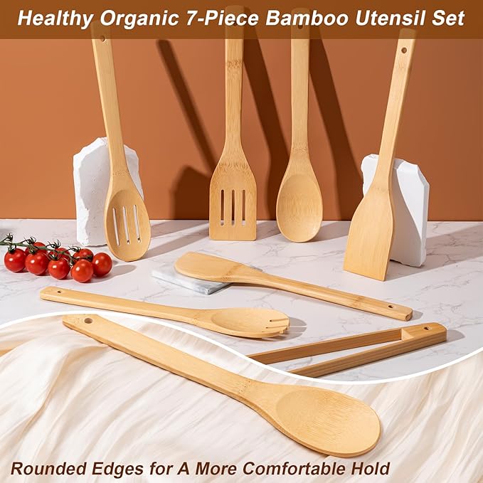 Wooden Spoons for Cooking 7-Piece, Kitchen Nonstick Bamboo Cooking Utensils Set, Durability Wooden Spatula Spoon for Everyday Use, Smooth Edge