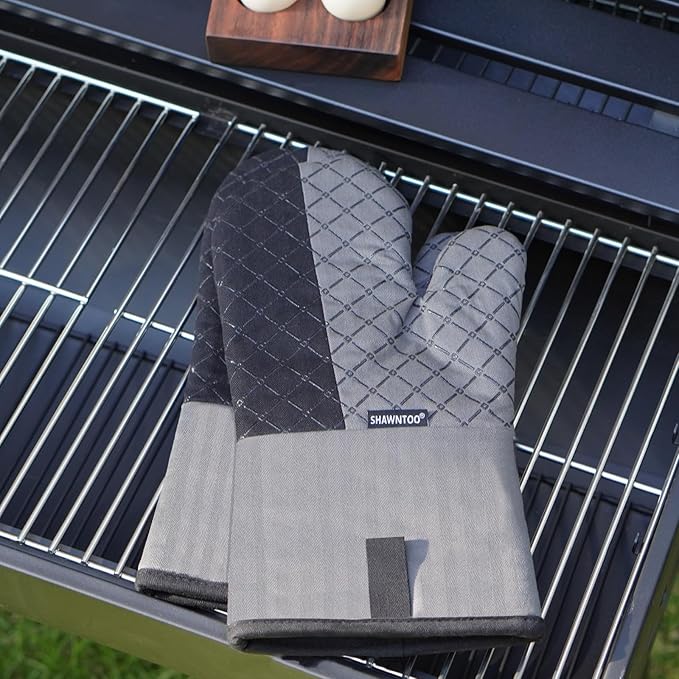 Oven Mitts and Pot Holders Sets 6pcs, Kitchen Oven Glove,High Heat Resistant 550 Degree Extra Long Oven Mitts and Potholders with Non-Slip Silicone Surface for Home Essentials (Grey) (Charcoal Grey)