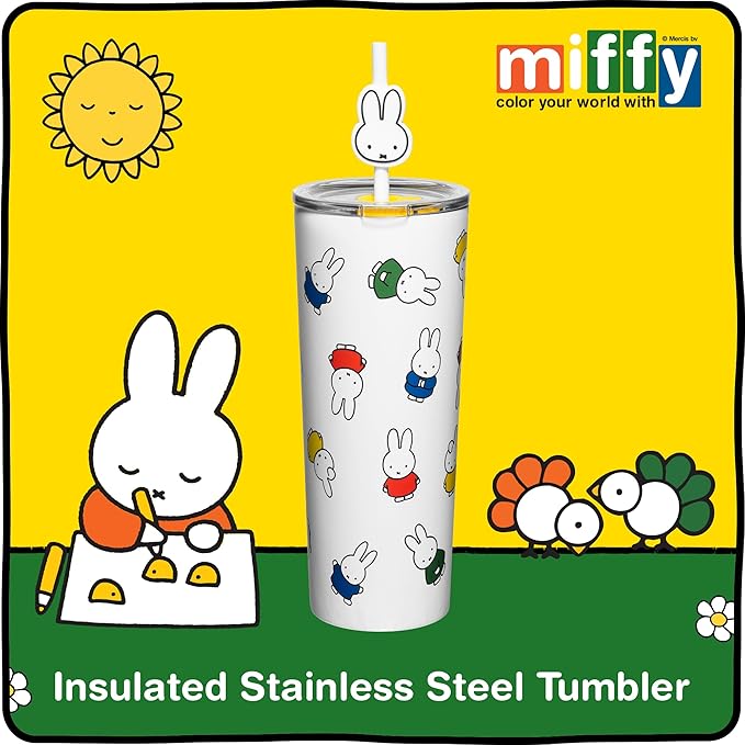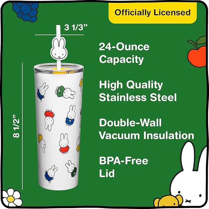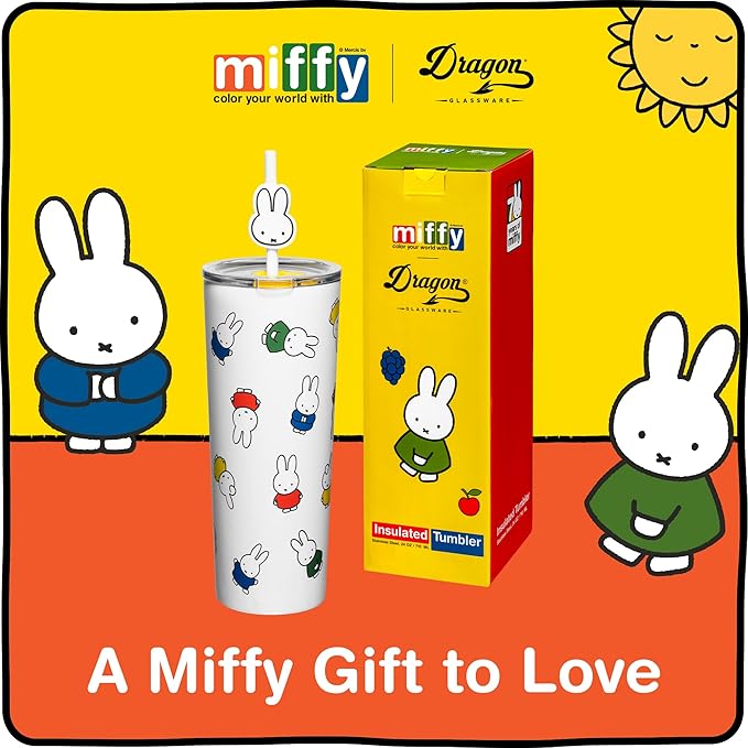 Dragon Glassware | Miffy 24 oz Vacuum Insulated Tumbler with Lid and Straw - Tumbler Cup with 2 Straws - Stainless Steel Tumbler with Straw Topper for Water, Iced Tea - Iconic
