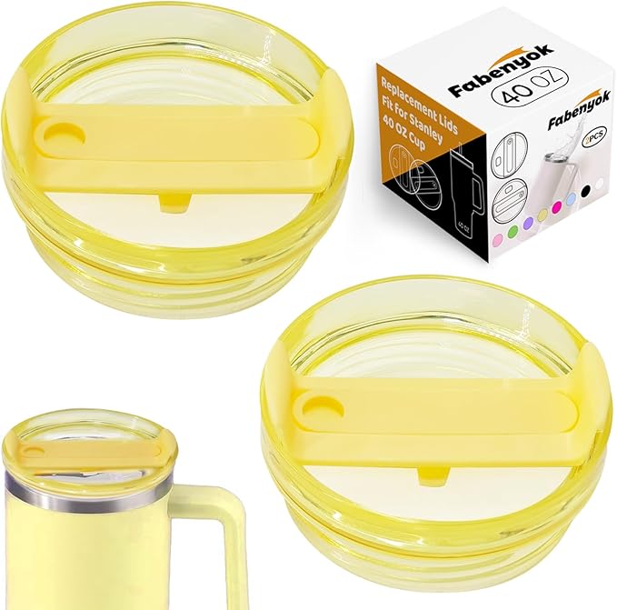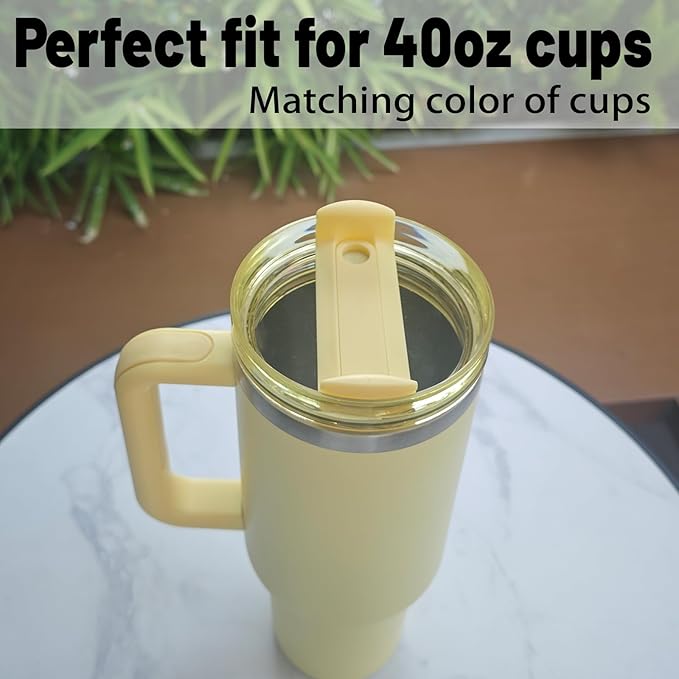 40 OZ Tumbler Lid Replacement Fit for Stanley Cup, 2 Pack Clear Replacement Lids Fit for Stanley Travel Tumbler, Spill Proof Tumbler Covers for Stanley Cup Accessories (Yellow)
