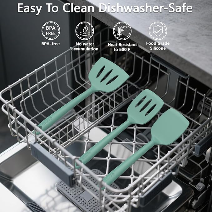 Coukre Silicone Kitchen Cooking Utensils Set with Holder – Heat-Resistant, Food-Grade Kitchen Tools, Spatula, Spoon & Gadgets for Non-Stick Pans, Dishwasher Safe (14, PureAquaGreen)