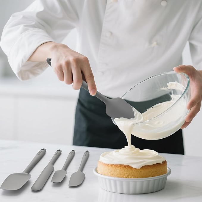 Coukre Silicone Spatula Set of 5,High Temperature Resistant, Food Grade Silicone, Dishwasher Safe, for Baking, Cooking (Pure Gray)