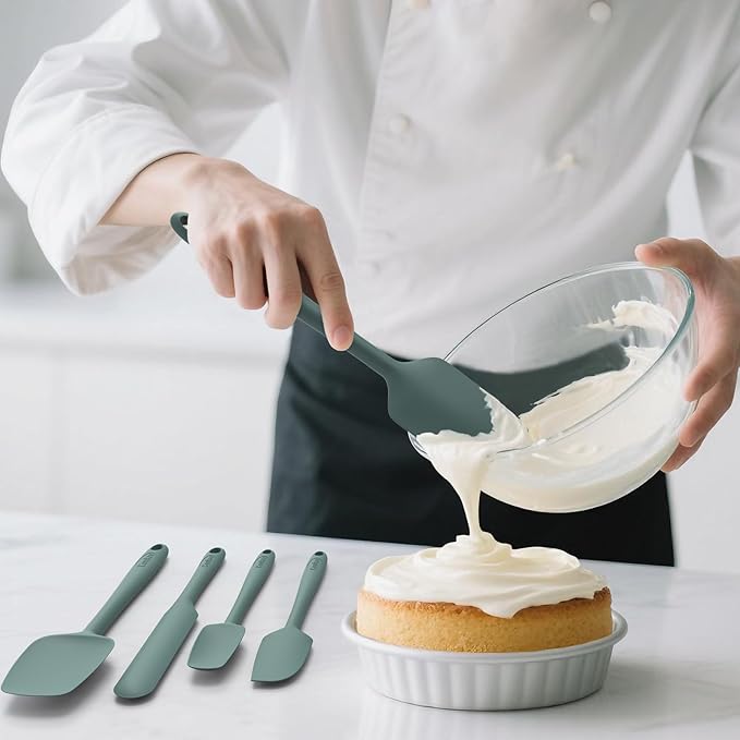 Coukre Silicone Spatula Set of 5,High Temperature Resistant, Food Grade Silicone, Dishwasher Safe, for Baking, Cooking (Pure Dark Green)