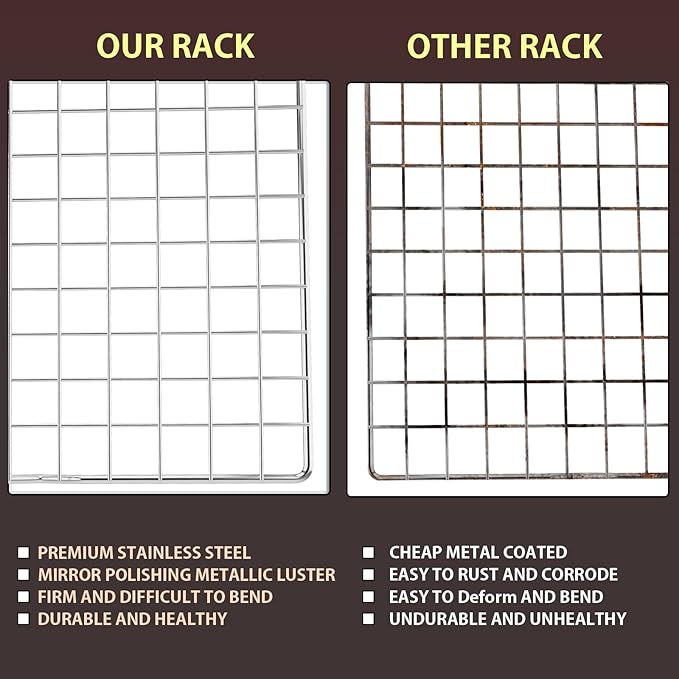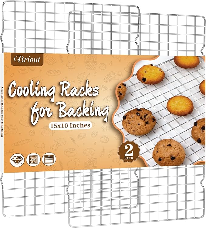 Briout 2PCS Cooling Racks for Cooking and Baking - 15x10 Inches Heavy Duty Stainless Steel Wire Rack for Baking, Grilling, Roasting - Oven & Dishwasher Safe - Fits Jelly Roll Sheet Pan-Silver