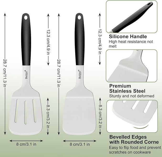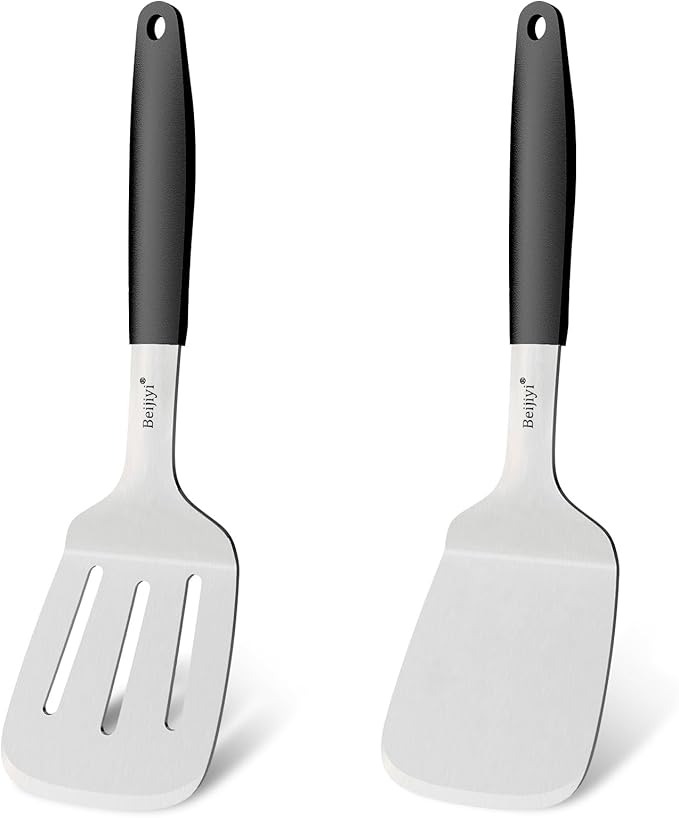 About This Versatile Spatula Set: Includes solid and slotted spatula. The slotted spatula is easy to drain oil, and the... Read more