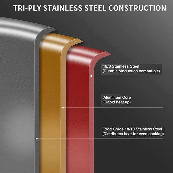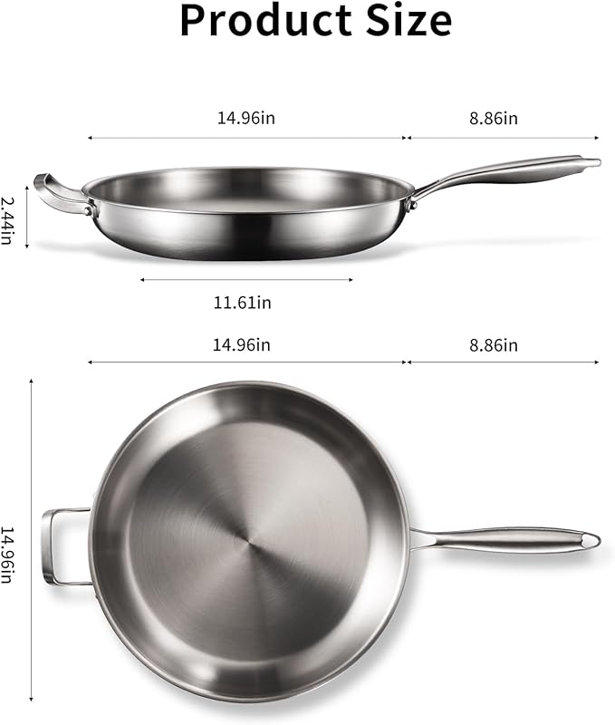 About This 【HIGH-QUALITY STAINLESS STEEL 】DELARLO 14 inch Stainless Steel Frying Pan Efficient Allows Heat to Pass Through the Entire... Read more