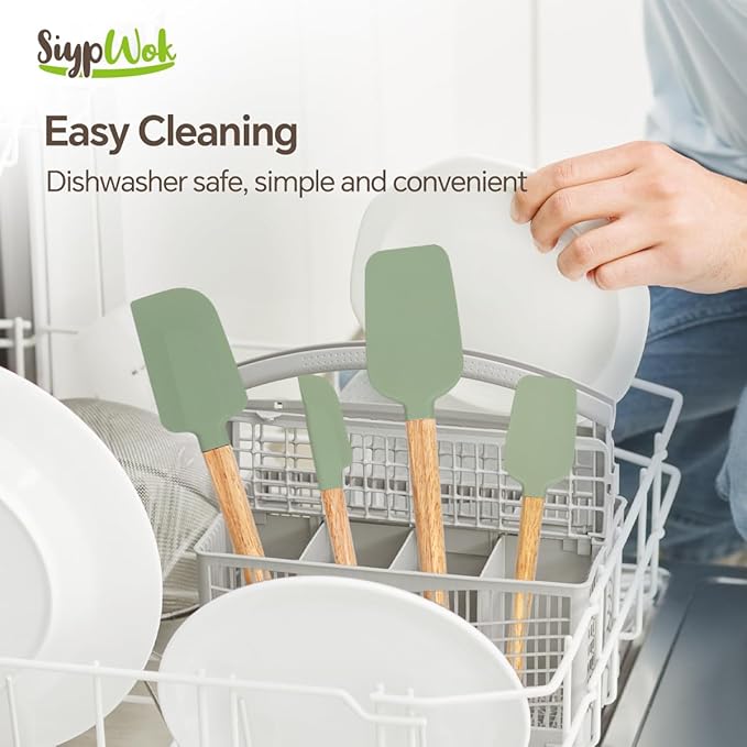 Silicone Spatula Set, Food Grade Rubber Spatula-4 Piece Nonstick Rubber Spatulas, Spoonula, Jar Scraper for Cooking, Baking, Mixing, Frosting - Heat Resistant Up to 600°F (Spatulas-Green)