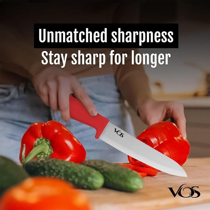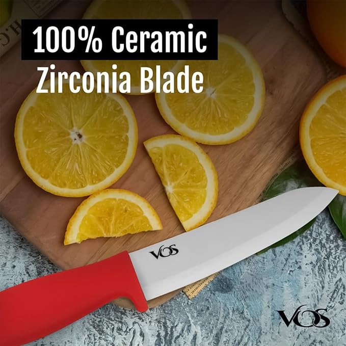 Vos Ceramic Knife Set with Peeler, Ceramic Knives Set For Kitchen, Ultra Sharp Kitchen Knife Set with Covers, 3" 4" 6" Paring, Utility & Chef Knife, Ultra Sharp, Lightweight, Dishwasher safe (Red)