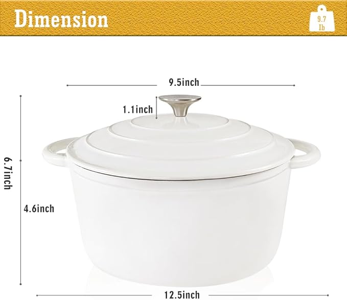 Dutch Oven,Cast Iron Dutch Ovens,Dutch Oven Pot with Lid,4.5 QT Enamel Dutch Pot,Dutch Ovens with Dual Handles,Cast Iron Pot for Braiser,Cooking,Gifts for Family,White