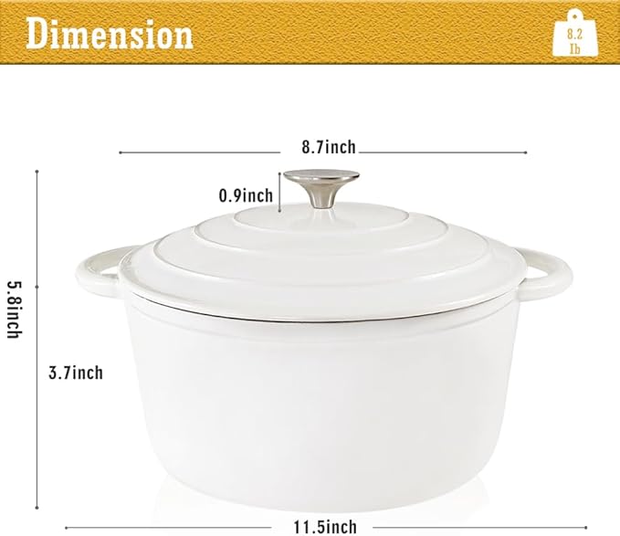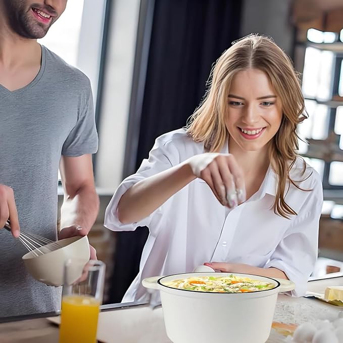 Dutch Oven,Cast Iron Dutch Ovens,Dutch Oven Pot with Lid,3 QT Enamel Dutch Pot,Dutch Ovens with Dual Handles,Cast Iron Pot for Braiser,Cooking,Gifts for Family,White