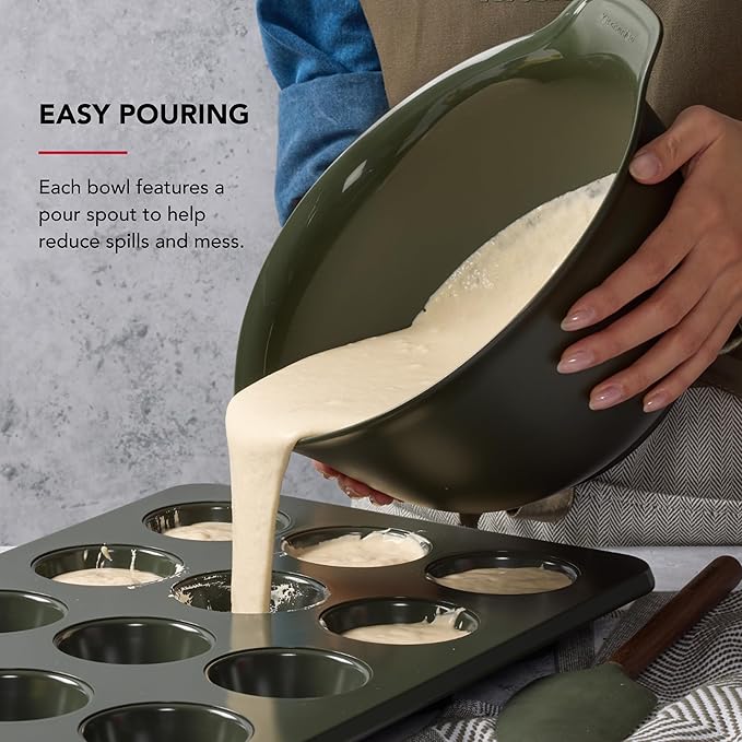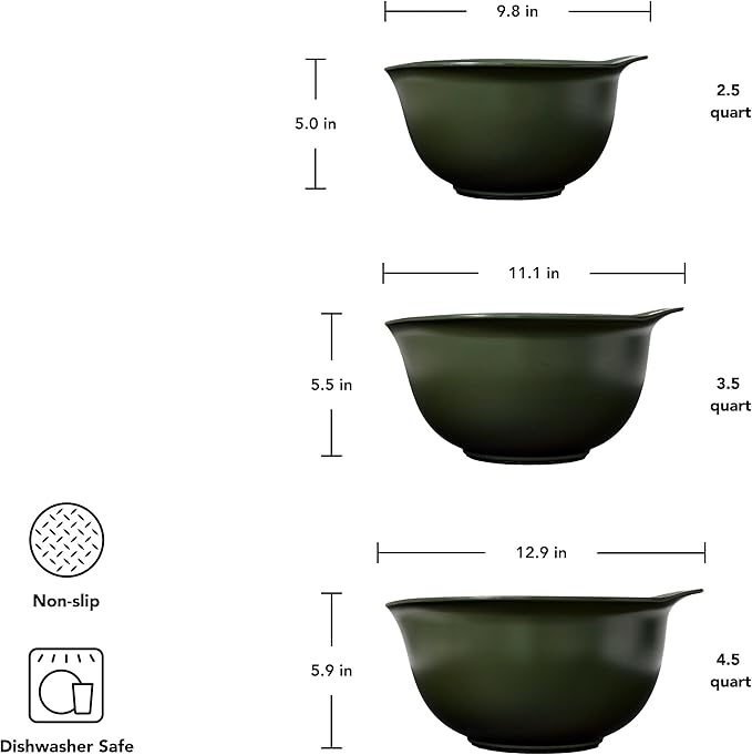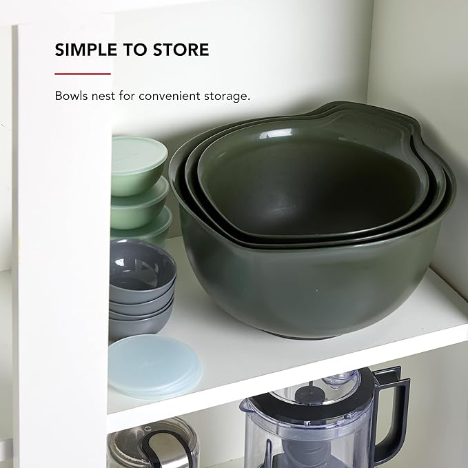 KitchenAid Universal Nesting Plastic Mixing Bowls, Set of 3, 2.5 quart, 3.5 quart, 4.5 quart, Evergreen