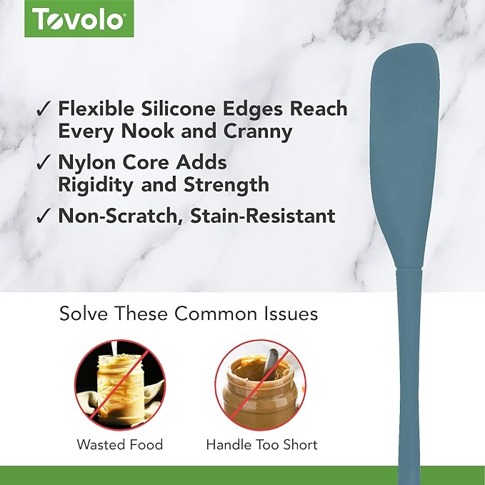 Tovolo Flex-Core Silicone Spatula Jar Scraper - Long-Handled Rubber Spatula with Angled Head for Scooping & Scraping - Heat-Resistant Spatulas for Kitchen Use, Dishwasher Safe & BPA-Free