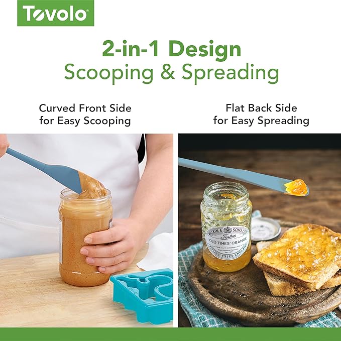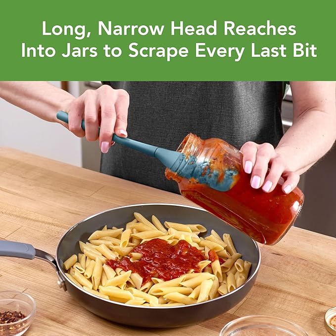 • Clean Out Jars: A narrow, angled head Flex-Core Jar Scraper, reaches into small jars and corners to scoop out every bit. The curved side is perfect for scooping while the flat side is ideal for spreading.