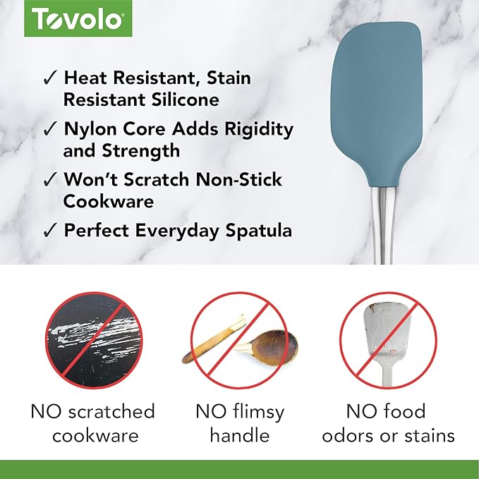 Tovolo Flex-Core Stainless Steel Handled Spatula, Heat-Resistant & BPA-Free Silicone Turner Head, Safe for Cast Iron & Non-Stick Cookware, Dishwasher-Safe: Home & Kitchen