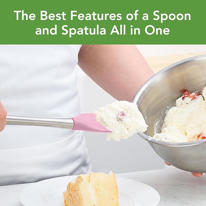 Tovolo Spoon Spatula Spoonula with Stainless Steel Handle Ergonomic Grip Pink Sorbet, Silicone Scoopula Kitchen Utensil Non Scratch Easy Clean Dishwasher Safe Heat Resistant Flex Core Scoop Spatula