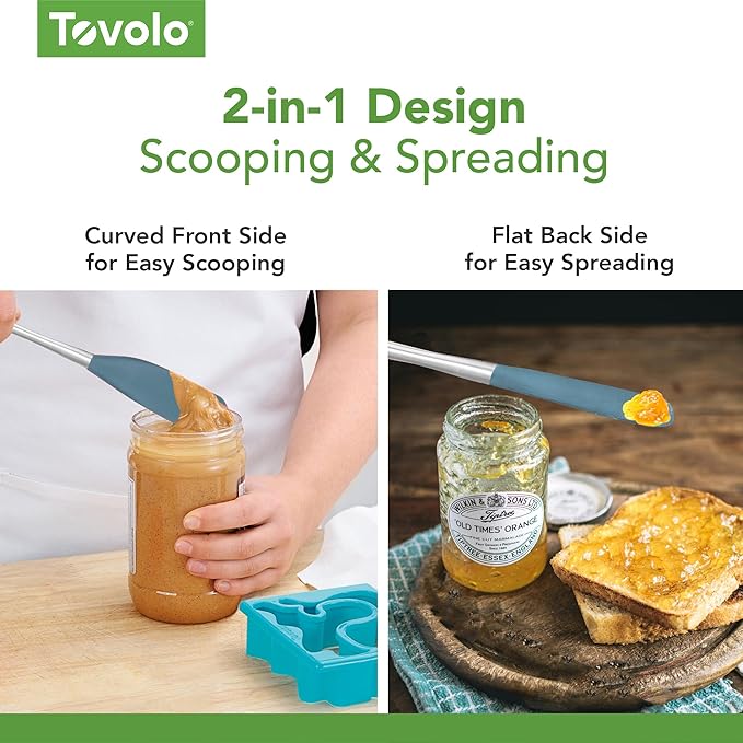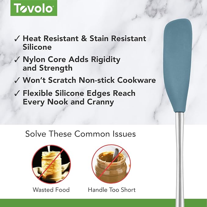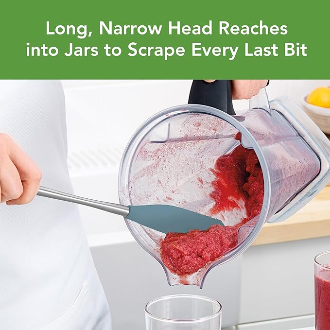 Tovolo Jar Spatula Silicone Long Stainless Steel Handle Scraper Spatula Blue Slate, Jar Scraper Heat Resistant Dishwasher Safe BPA Free Kitchen Utensil for Scraping Spreading Jelly Peanut Butter
