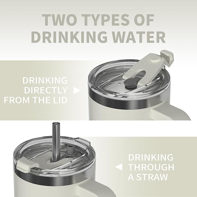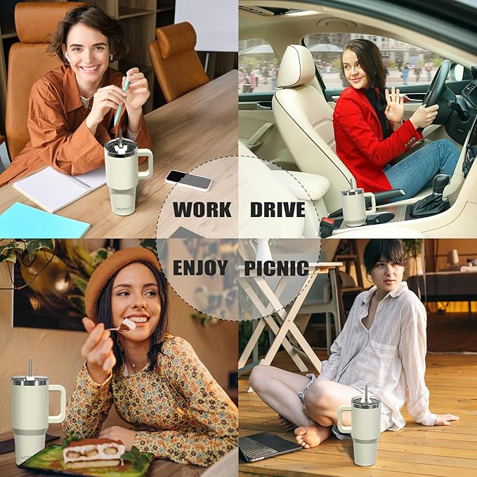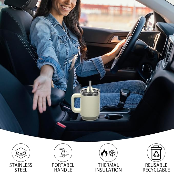 20 oz Tumbler with Handle,Tumbler with Lid and Straw,Double Wall Insulated Cup Stainless Steel Travel Mug(Cold for 34 Hours),Water Bottle for Iced Tea,Coffee,Cold Beverages(Cream White)