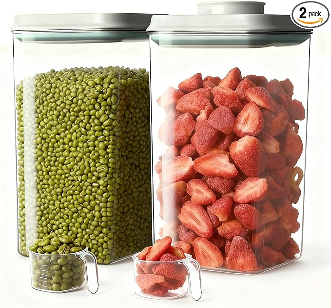 Pop Airtight Food Storage Containers Set with Lids, Large 4.2Qt/4L Food Containers with Scoop, Kitchen Pantry Organization and Storage, BPA Free Stackable Cereal Container (2 * 4.2Qt)