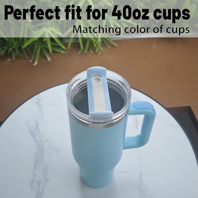 40 OZ Tumbler Lid Replacement Fit for Stanley Cup, 2 Pack Clear Replacement Lids Fit for Stanley Travel Tumbler, Spill Proof Tumbler Covers for Stanley Cup Accessories (Cornflower Cabana Gloss)