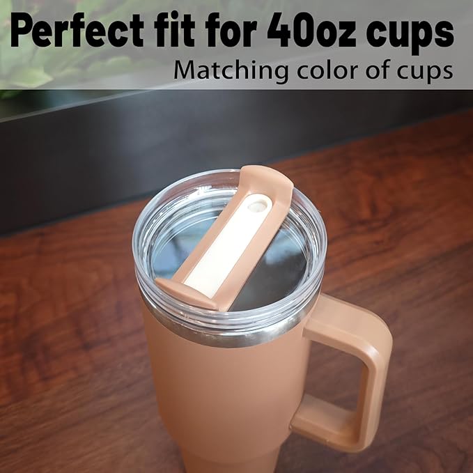 40 OZ Tumbler Lid Replacement Fit for Stanley Cup, 2 Pack Clear Replacement Lids Fit for Stanley Travel Tumbler, Spill Proof Tumbler Covers for Stanley Cup Accessories (Brown)