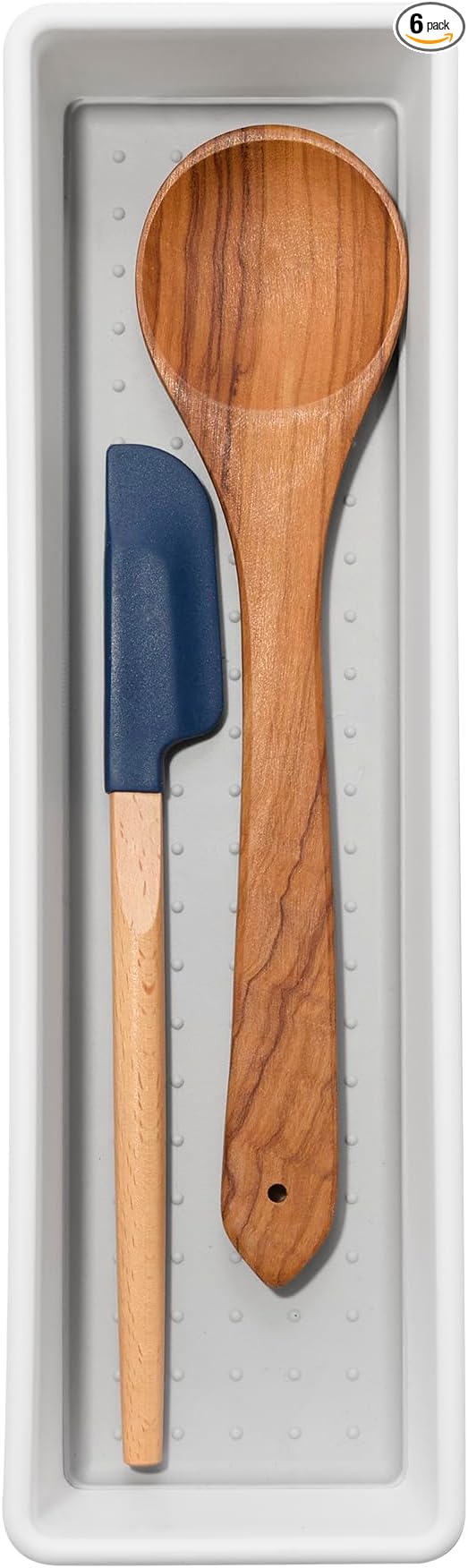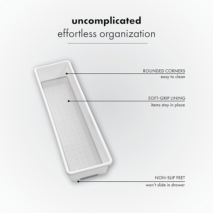 madesmart Classic 12 x 3 Bin, Drawer Organizer, Multi-Purpose Home Organization, BPA Free, White (Pack of 6)