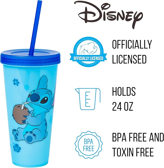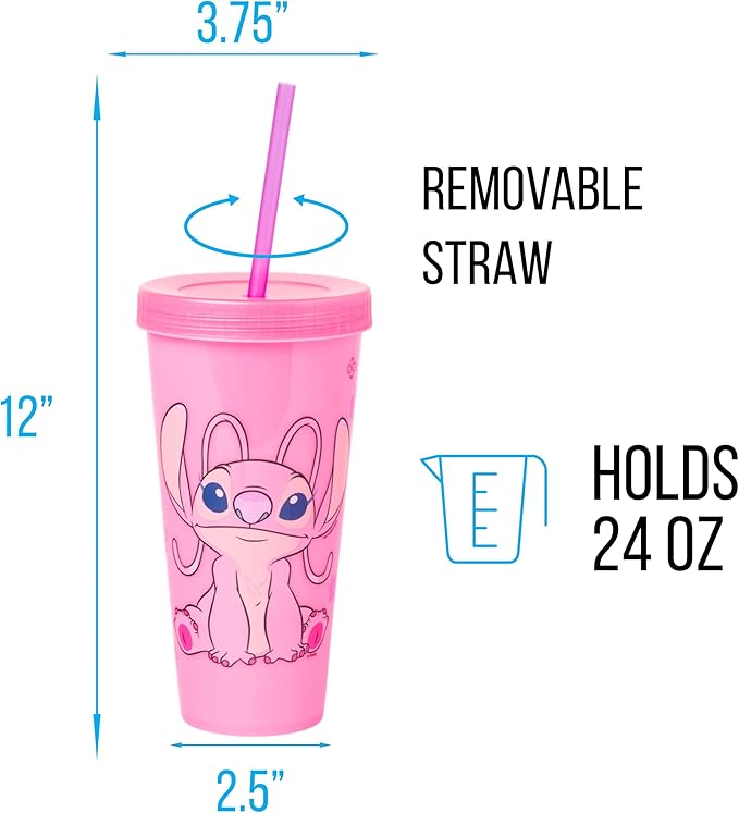 Silver Buffalo Disney Lilo and Stitch Angel Coconut Flowers 2 Count Color Change Plastic Tumbler, 24-Ounce (Pack of 12)