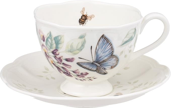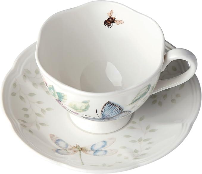 Lenox Porcelain Meadow Cup and Saucer, 1.3 LB, Blue Butterfly (Pack of 12)