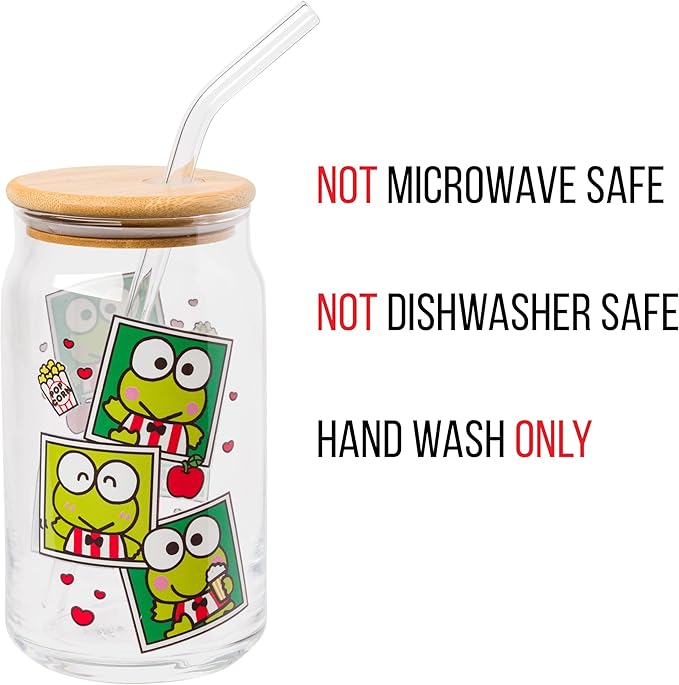 Silver Buffalo Sanrio Hello Kitty and Friends Keroppi Polaroids Glass Jar Tumbler with Bamboo Lid and Glass Straw, 16 Ounces (Pack of 12)