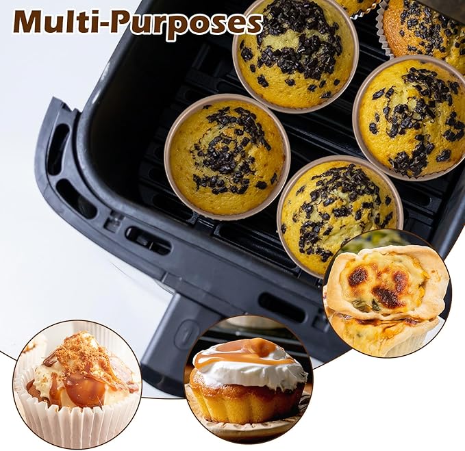 6PCS Air Fryer Jumbo Muffin Cupcake Pans, Mini Pie Pan, 4 Inch Hamburger Bun Mold, Non-Stick Air Fryer Egg Baking Pan Individual Mini Cake Pans for Baking