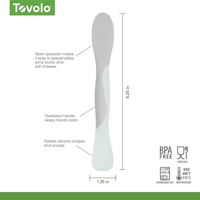 Tovolo Mini Scoop and Spread Tool for Kitchen Meal Prep Small Sandwich Spreader Spatula for Peanut Butter Jelly, Silicone BPA Free Dishwasher Safe Scooper Spreader, Blue Haze and Oyster Gray