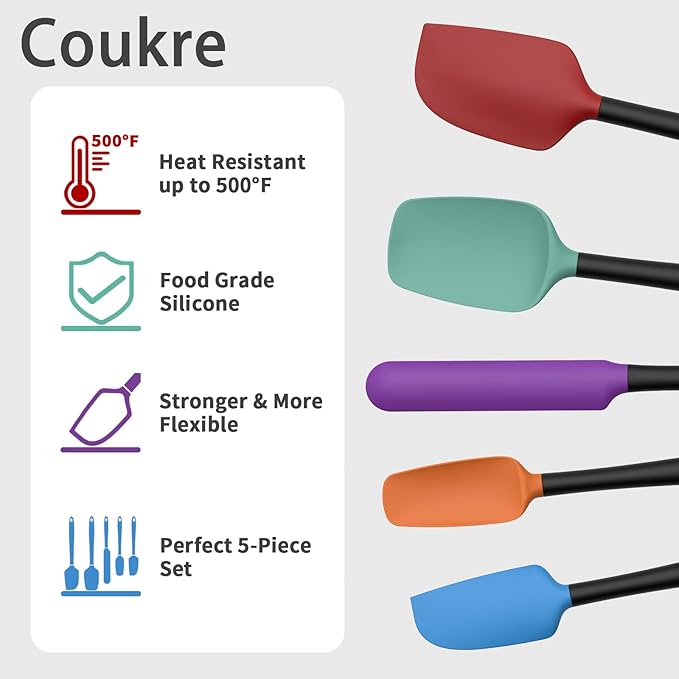 About This [Versatile Spatula 5-Piece]: Coukre Silicone spatulas heat resistant,1 large spatula, 1 small spatula, 1 large scoop spatula, 1... Read more