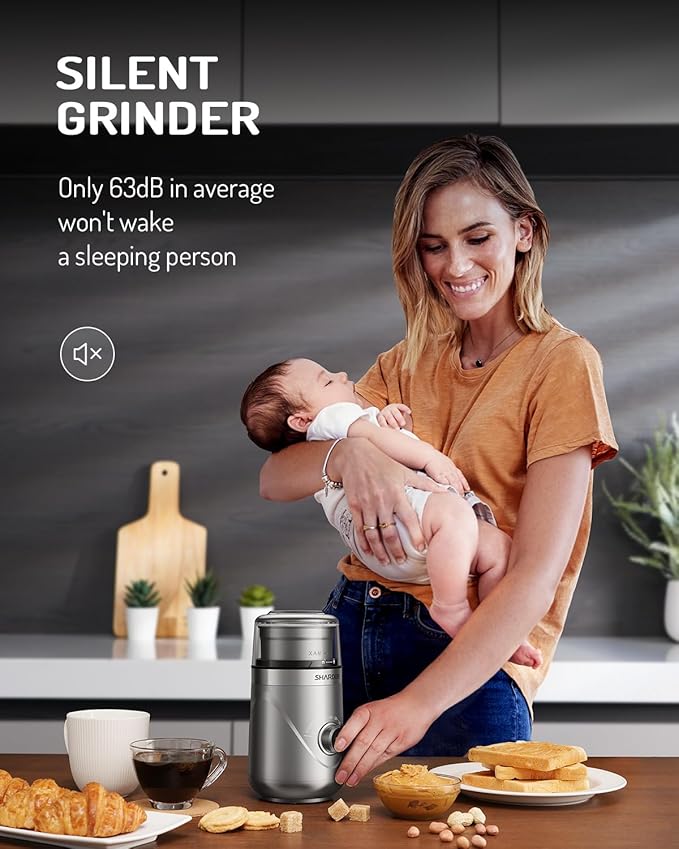 SHARDOR Electric Super Silent Blade Coffee Grinder, Timed Grind Control Rotary Knob, Adjustable Coarse to Fine for Coffee Beans, Spices & Herbs, with 2 Removable Stainless Steel Bowl, Silver