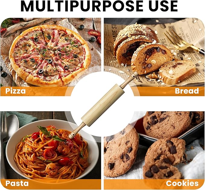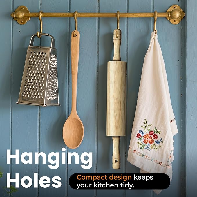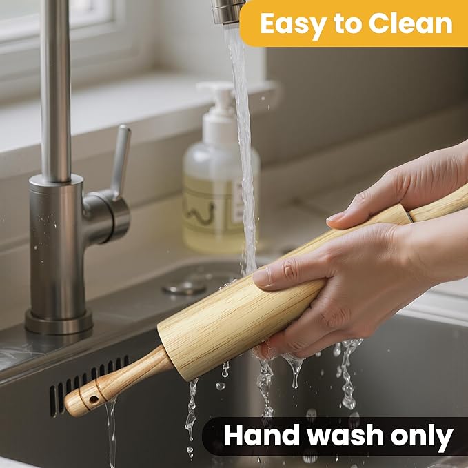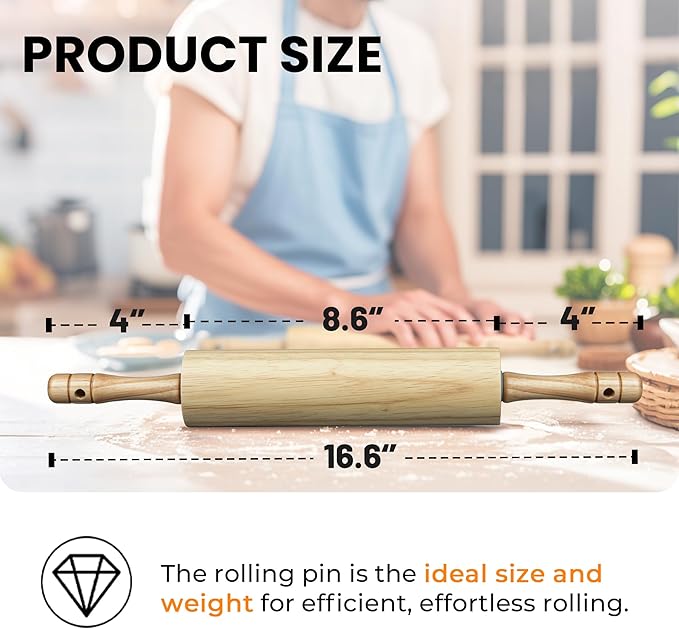 KARRYOUNG Rubber Wood Rolling Pin for Baking, Kitchen Dough Roller With Handles, Rodillo Para Masa, Rolling Pin for Dough, Pizza,Bread, Fondant & Tortilla